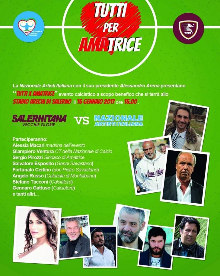 Il 15 gennaio 2017 si è tenuto c/o lo stadio Arechi di Salerno, l'evento denominato "Tutti per Amatrice" tra la Nazionale Azzurri Italiana e le vecchie glorie della Salernitana calcio a cui hanno partecipato molti e celebri calciatori di oggi e di ieri tra cui Rino Gattuso, Stefano Tacconi, Coda,Ferrara, Chimenti, Breda, Di Napoli e tanti altri.